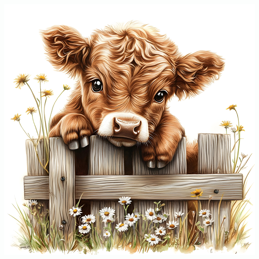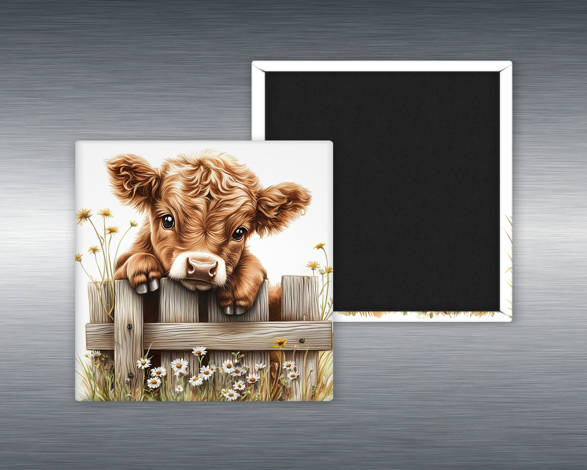 Meet the fluffiest fence-hoppers you’ll ever stick to your fridge! The “Baby Highland Cow” magnet features an irresistibly adorable baby Highland cow, peeking over wooden fences with curious eyes and tousled bangs. Their fuzzy faces and playful expressions bring a heart-melting dose of country charm to any magnetic surface.