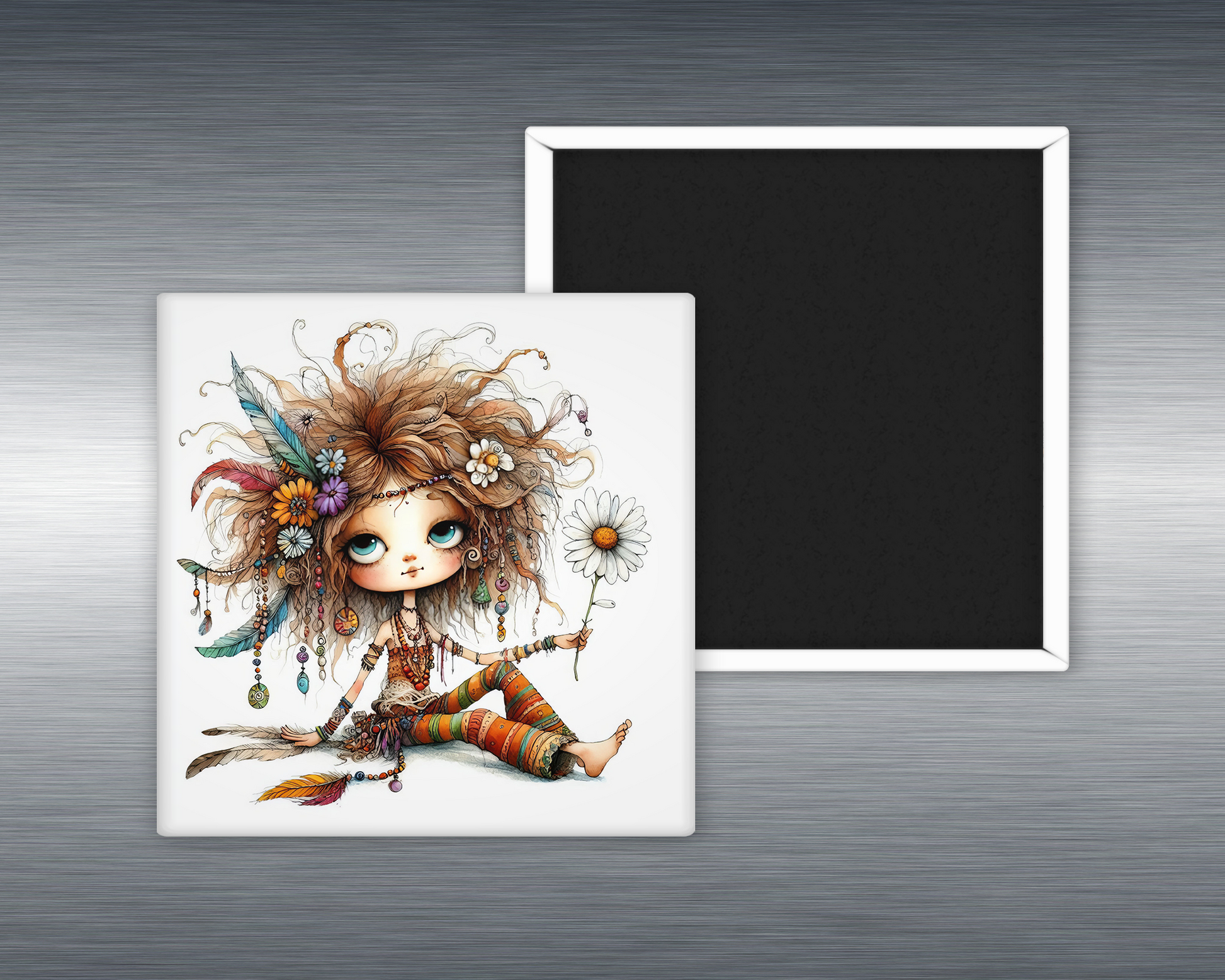 Meet your new fridge muse: the “Eccentric Boho Hippie” magnet, starring a carefree, color-loving, rule-breaking girl who dances to her own beat. With flowing fabrics, layered jewelry, and a look that says "Don’t follow me—I’m lost too", she radiates creativity, freedom, and just the right amount of chaos.