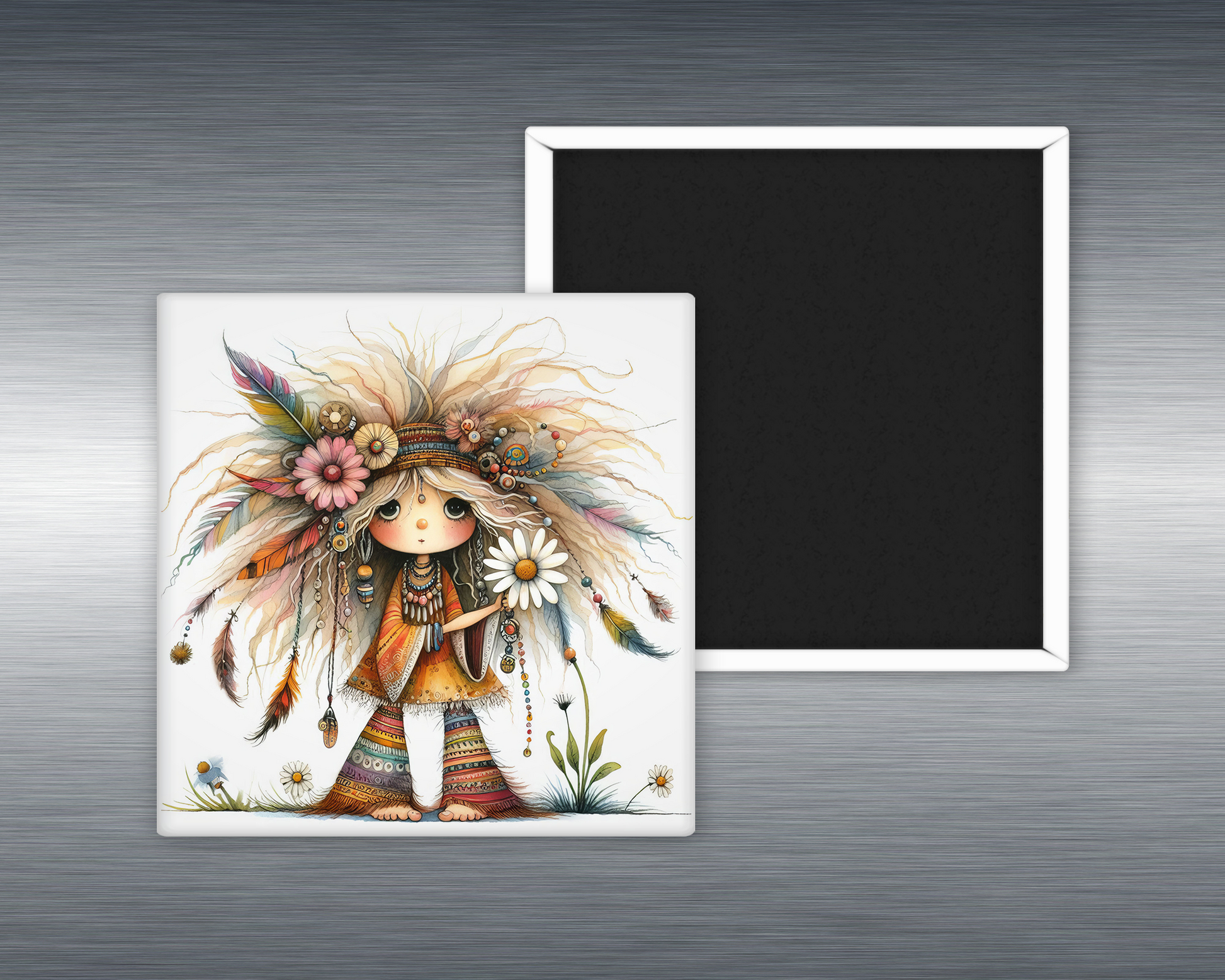 Meet your new fridge muse: the “Eccentric Boho Hippie” magnet, starring a carefree, color-loving, rule-breaking girl who dances to her own beat. With flowing fabrics, layered jewelry, and a look that says "Don’t follow me—I’m lost too", she radiates creativity, freedom, and just the right amount of chaos.
