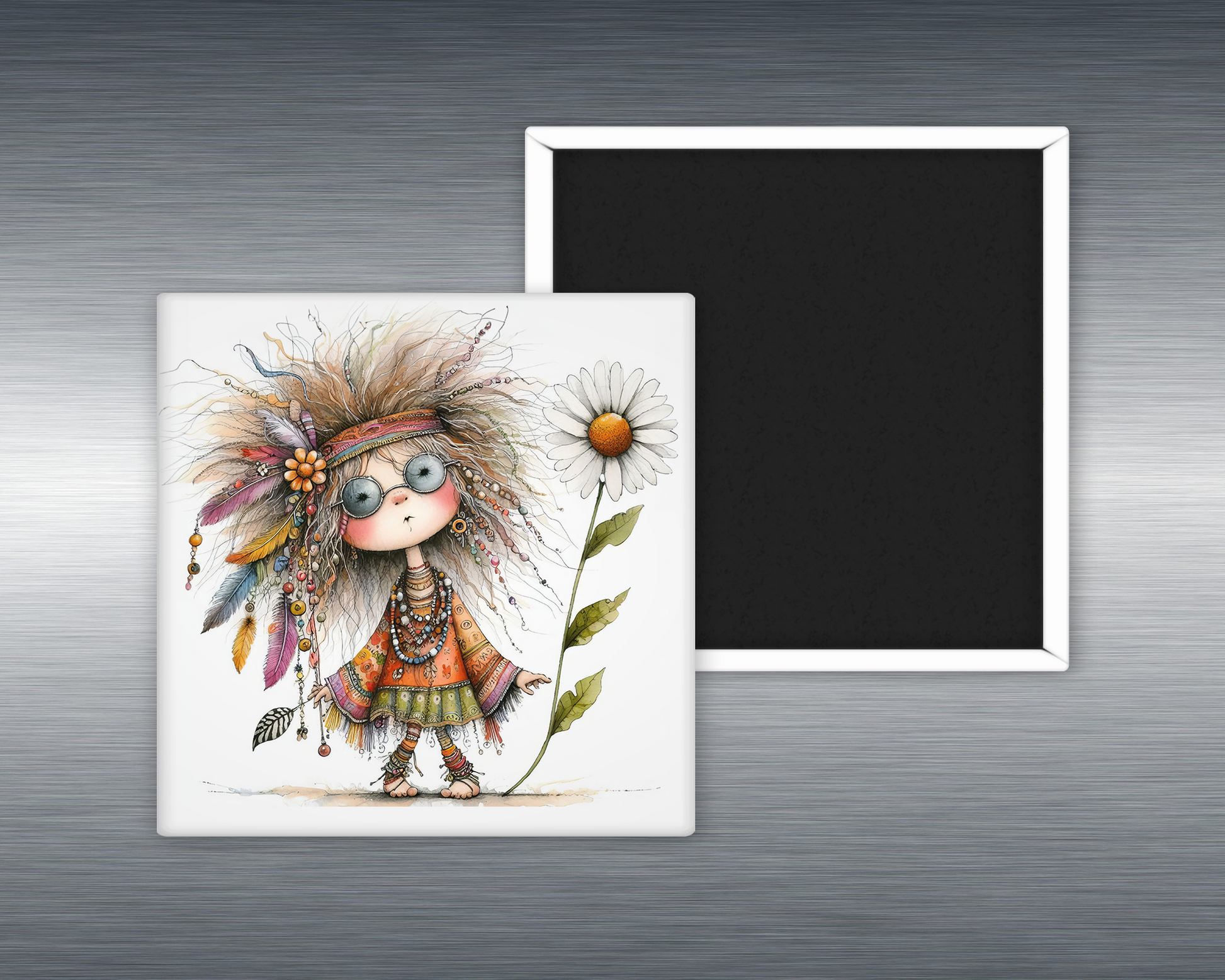 Meet your new fridge muse: the “Eccentric Boho Hippie” magnet, starring a carefree, color-loving, rule-breaking girl who dances to her own beat. With flowing fabrics, layered jewelry, and a look that says "Don’t follow me—I’m lost too", she radiates creativity, freedom, and just the right amount of chaos.