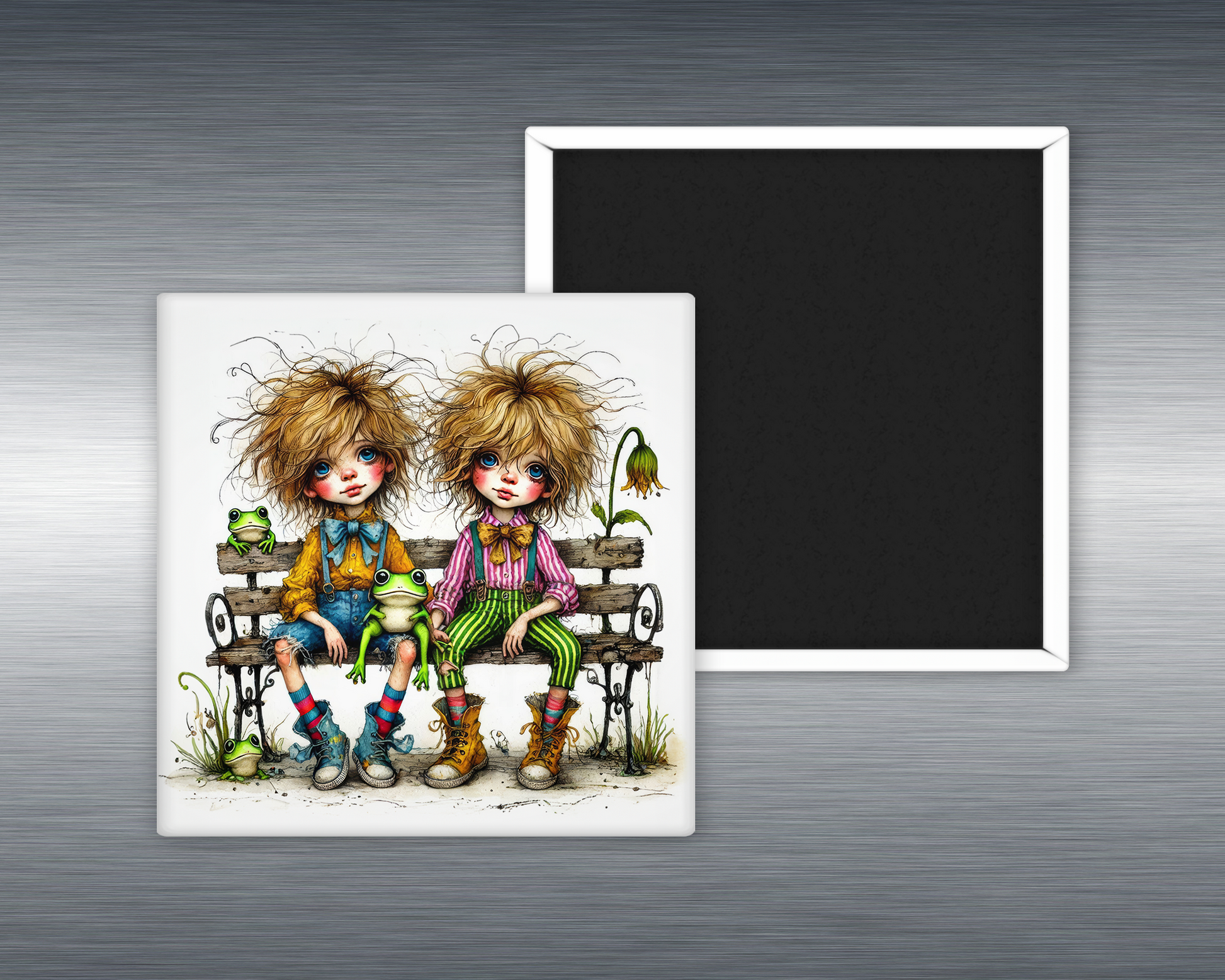 Meet the “Eccentric Brothers” magnet—a celebration of brotherly weirdness at its finest. These quirky brothers may not agree on much, but they do agree on one thing: frogs make excellent company. Whether they’re swapping tall tales, sharing snacks, or arguing over which frog is the coolest, this oddball duo brings big personality and even bigger laughs.