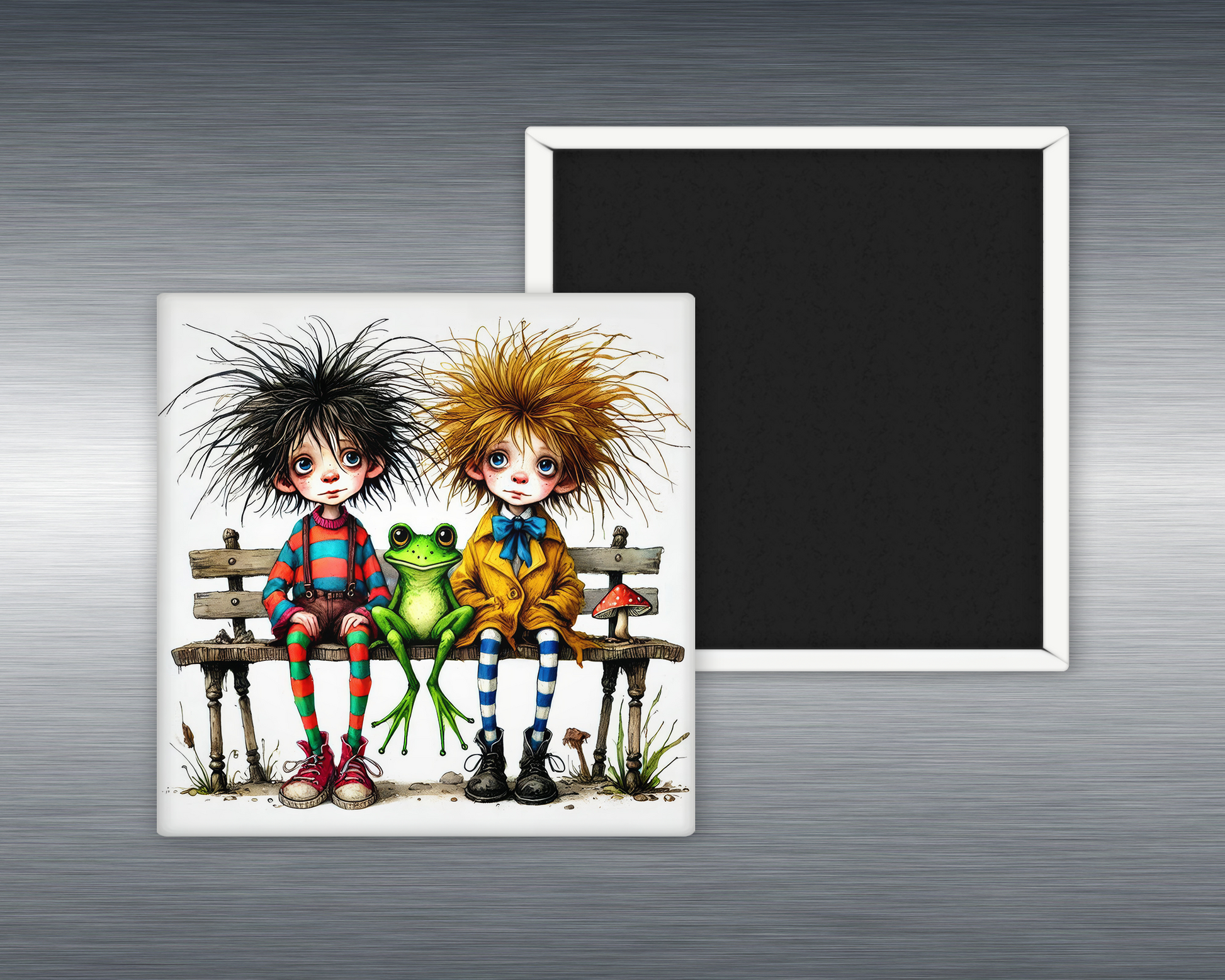 Meet the “Eccentric Brothers” magnet—a celebration of brotherly weirdness at its finest. These quirky brothers may not agree on much, but they do agree on one thing: frogs make excellent company. Whether they’re swapping tall tales, sharing snacks, or arguing over which frog is the coolest, this oddball duo brings big personality and even bigger laughs.