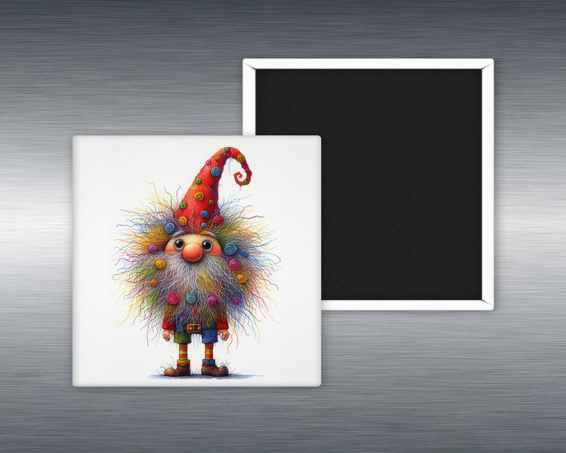 Brace yourself—this gnome’s got attitude. The “Eccentric Gnome” magnet features a little troublemaker who’s more into mischief than mushrooms. With his wild beard, funky hat, and a suspiciously smug grin, he’s clearly up to something—and your fridge is now part of it.