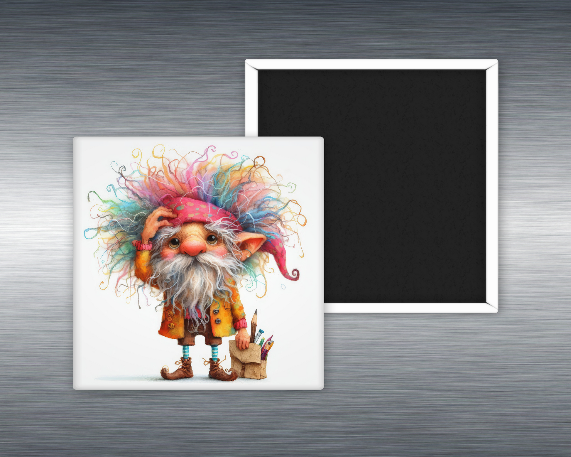 Brace yourself—this gnome’s got attitude. The “Eccentric Gnome” magnet features a little troublemaker who’s more into mischief than mushrooms. With his wild beard, funky hat, and a suspiciously smug grin, he’s clearly up to something—and your fridge is now part of it.