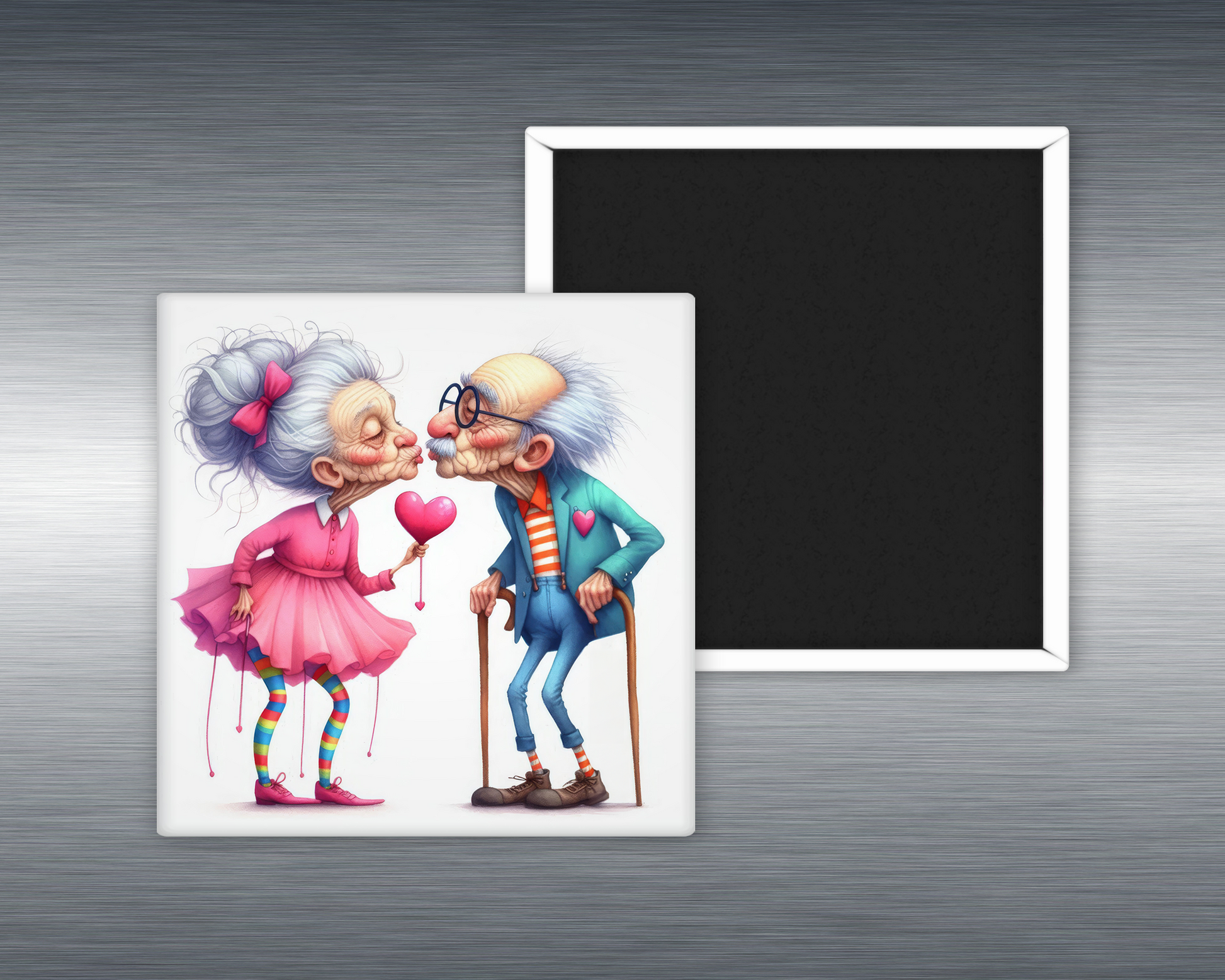 Love doesn’t retire—and neither do these two. The “Eccentric Old Folk Kiss” magnet captures a delightfully quirky couple caught in a bold, blissful kiss, proving that passion only gets better (and weirder) with time. Whether they're colorful striped socks or mismatched shoes, these lovebirds aren’t just aging—they’re thriving.