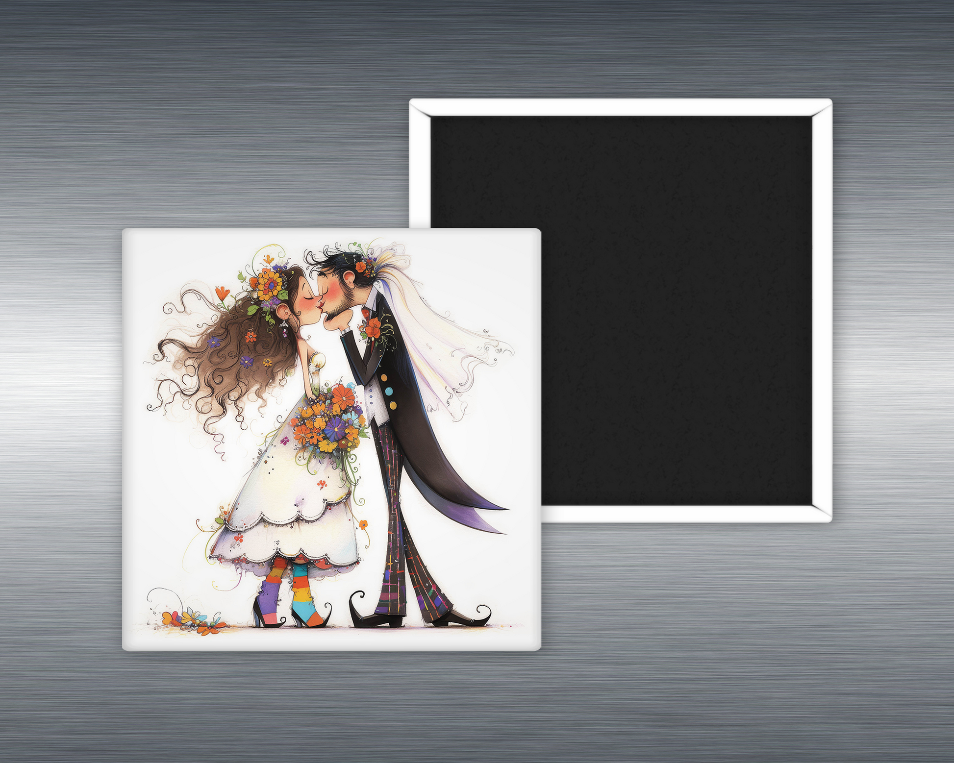 Bold. Offbeat. Unapologetically in love. Our “Eccentric Romantic Couple” magnet captures quirky couples in spontaneous, joy-filled smooches—proof that romance doesn’t need to follow the rules to be unforgettable. Whether they’re dressed in mismatched patterns, with funky hair, or wild colors, these lovebirds share kisses that are as expressive and unpredictable as they are.