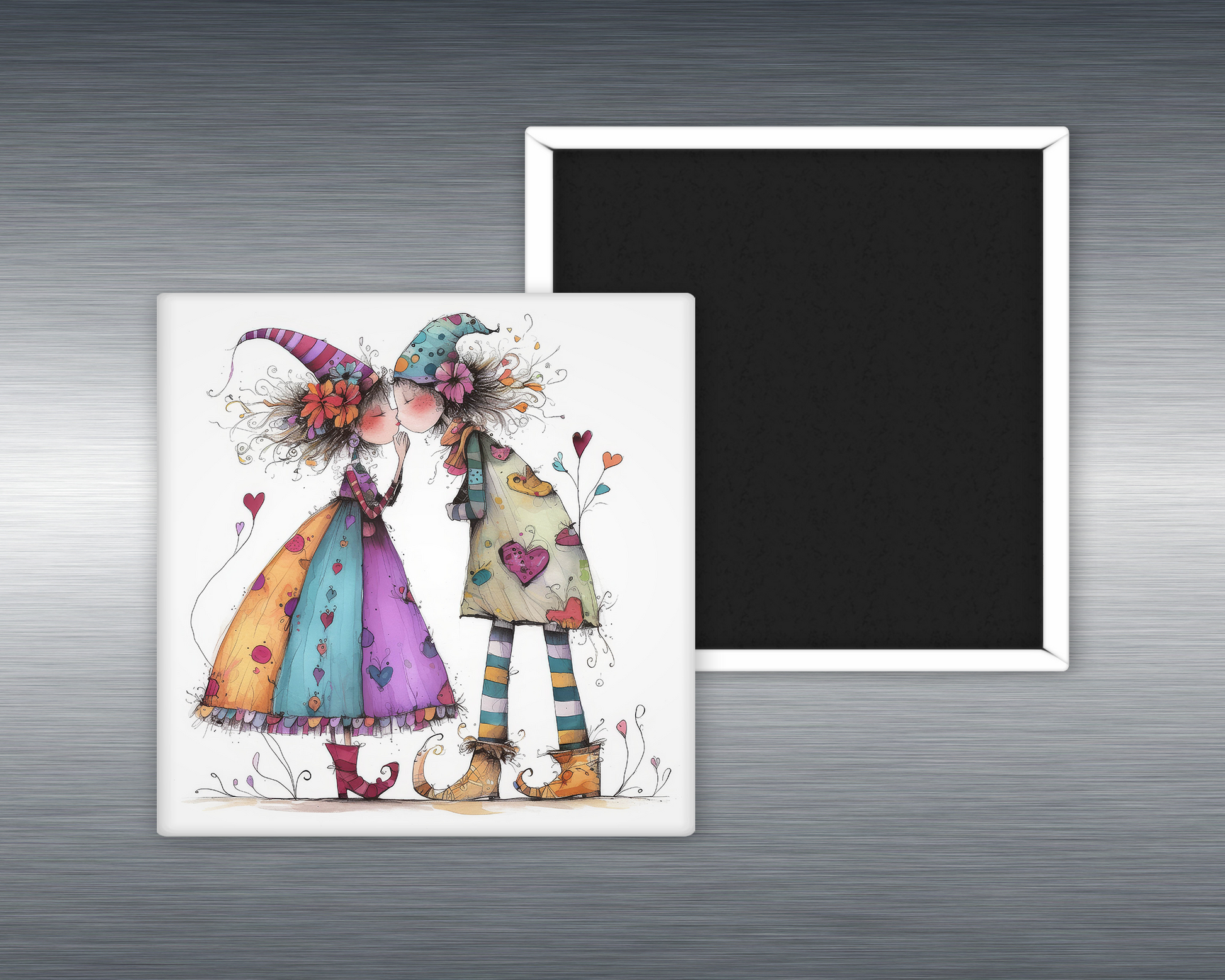 Bold. Offbeat. Unapologetically in love. Our “Eccentric Romantic Couple” magnet captures quirky couples in spontaneous, joy-filled smooches—proof that romance doesn’t need to follow the rules to be unforgettable. Whether they’re dressed in mismatched patterns, with funky hair, or wild colors, these lovebirds share kisses that are as expressive and unpredictable as they are.