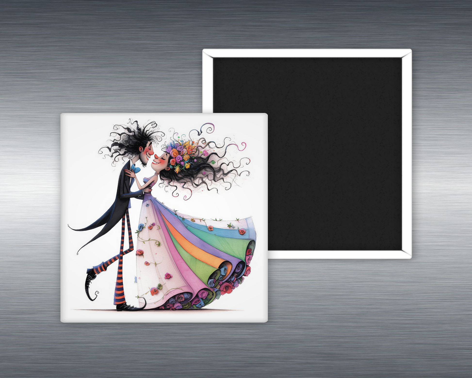 Bold. Offbeat. Unapologetically in love. Our “Eccentric Romantic Couple” magnet captures quirky couples in spontaneous, joy-filled smooches—proof that romance doesn’t need to follow the rules to be unforgettable. Whether they’re dressed in mismatched patterns, with funky hair, or wild colors, these lovebirds share kisses that are as expressive and unpredictable as they are.