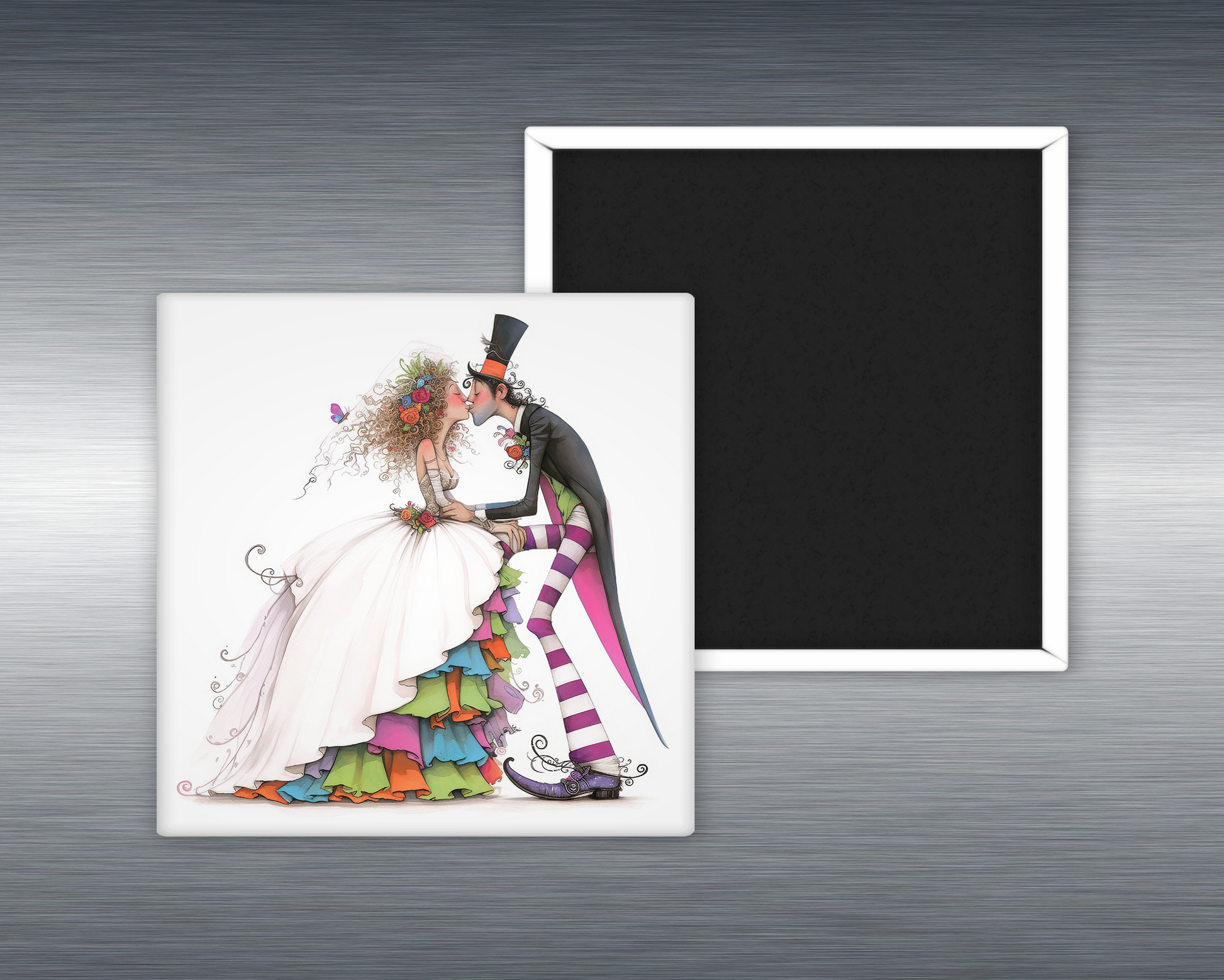 Bold. Offbeat. Unapologetically in love. Our “Eccentric Romantic Couple” magnet captures quirky couples in spontaneous, joy-filled smooches—proof that romance doesn’t need to follow the rules to be unforgettable. Whether they’re dressed in mismatched patterns, with funky hair, or wild colors, these lovebirds share kisses that are as expressive and unpredictable as they are.