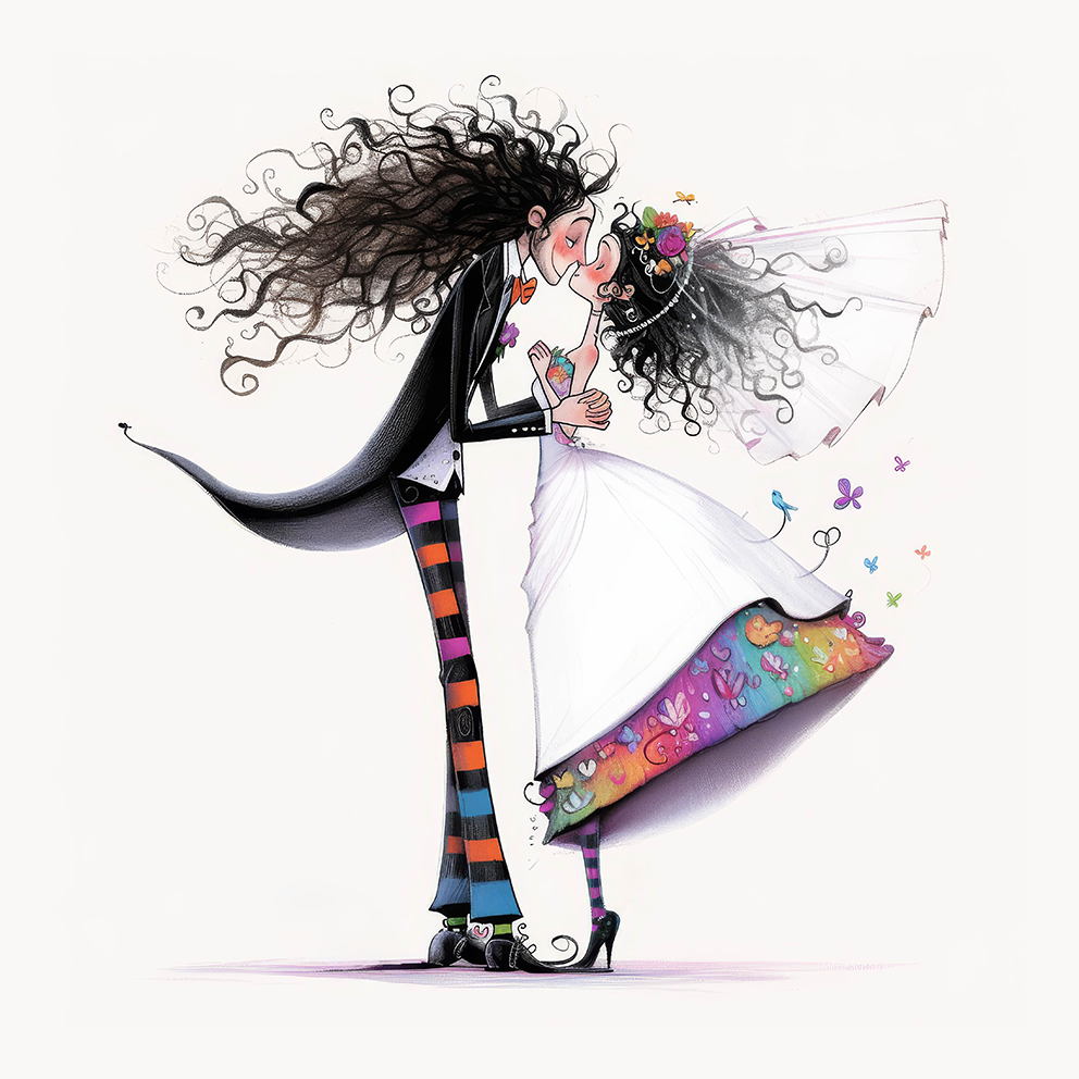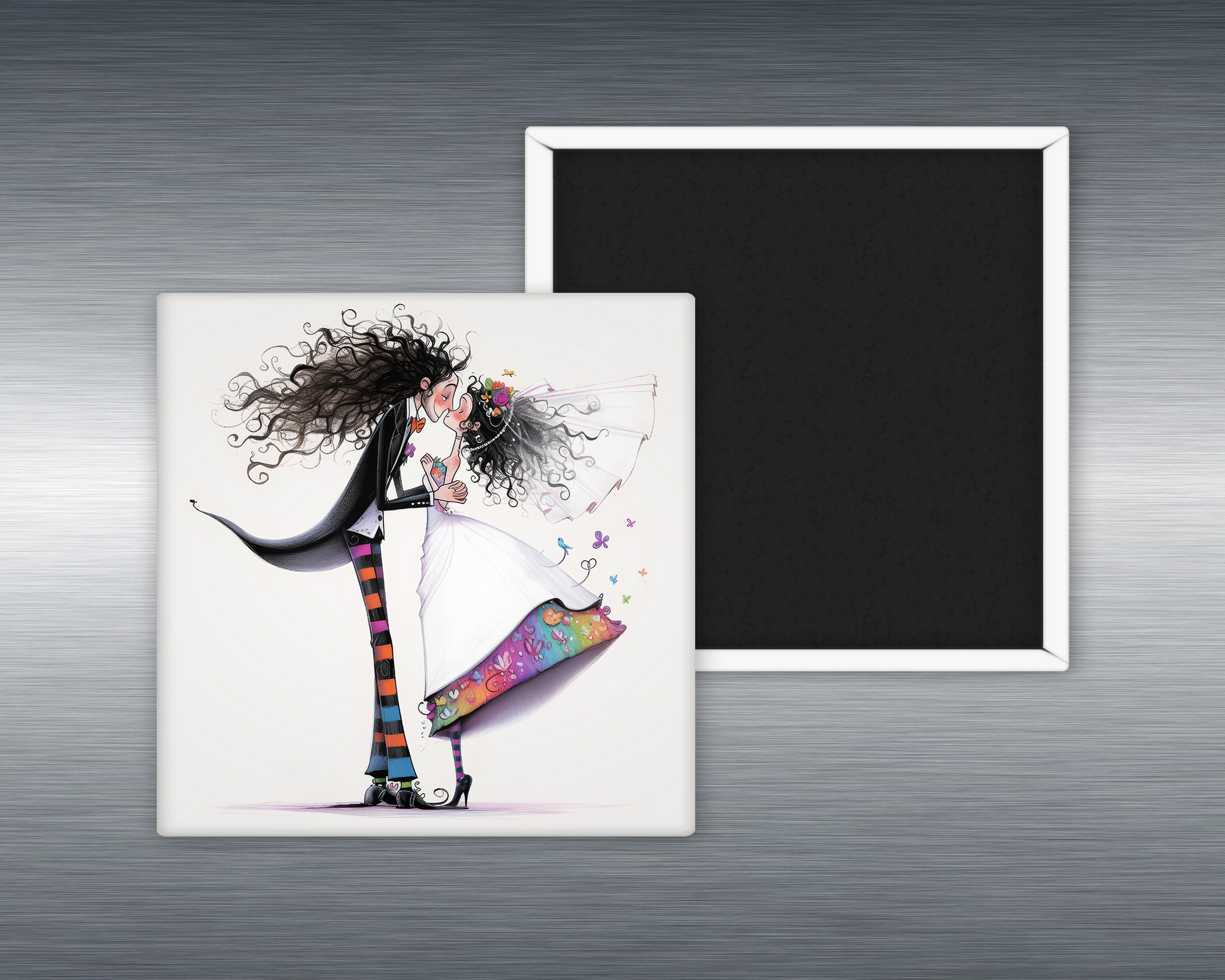 Bold. Offbeat. Unapologetically in love. Our “Eccentric Romantic Couple” magnet captures quirky couples in spontaneous, joy-filled smooches—proof that romance doesn’t need to follow the rules to be unforgettable. Whether they’re dressed in mismatched patterns, with funky hair, or wild colors, these lovebirds share kisses that are as expressive and unpredictable as they are.
