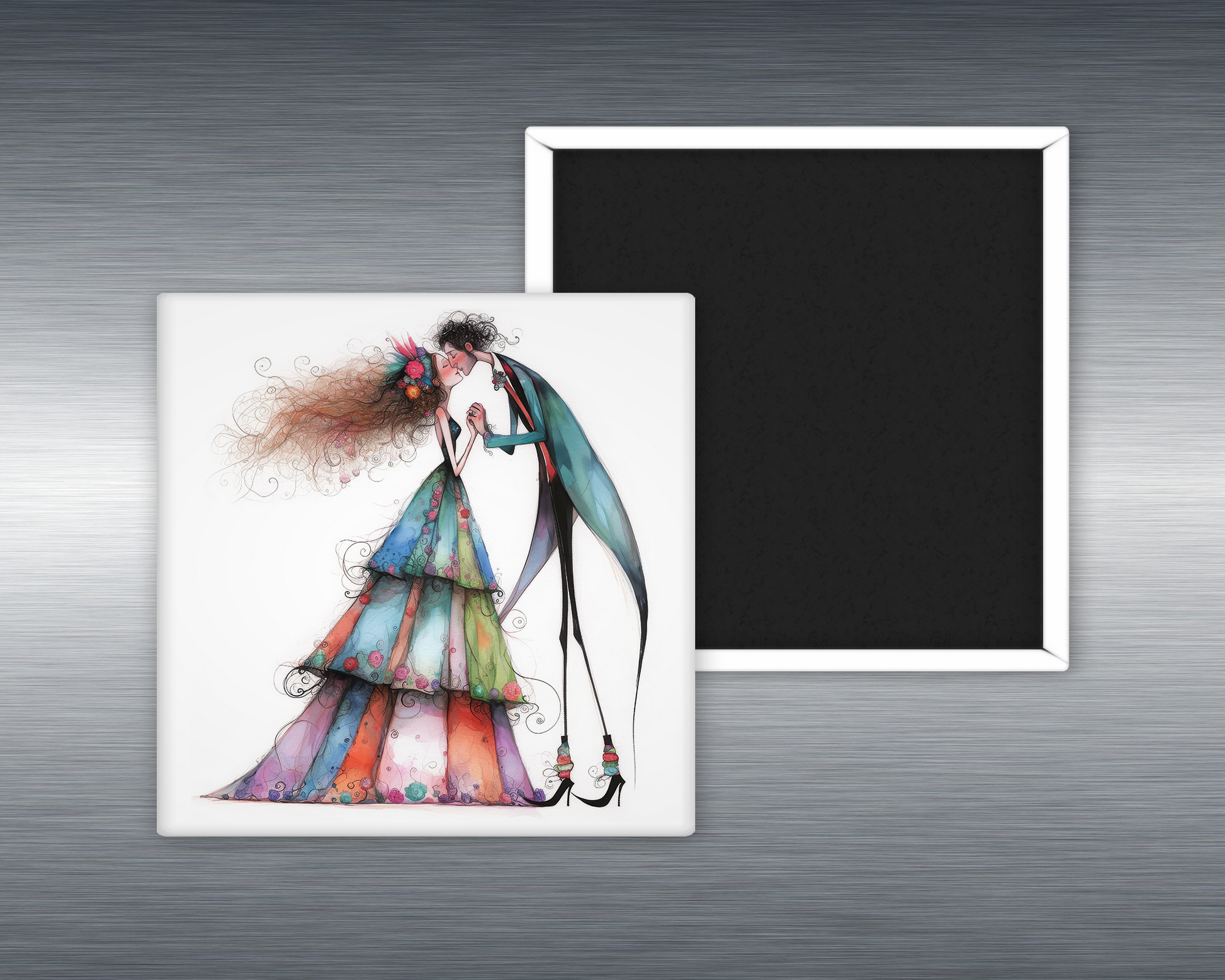 Bold. Offbeat. Unapologetically in love. Our “Eccentric Romantic Couple” magnet captures quirky couples in spontaneous, joy-filled smooches—proof that romance doesn’t need to follow the rules to be unforgettable. Whether they’re dressed in mismatched patterns, with funky hair, or wild colors, these lovebirds share kisses that are as expressive and unpredictable as they are.