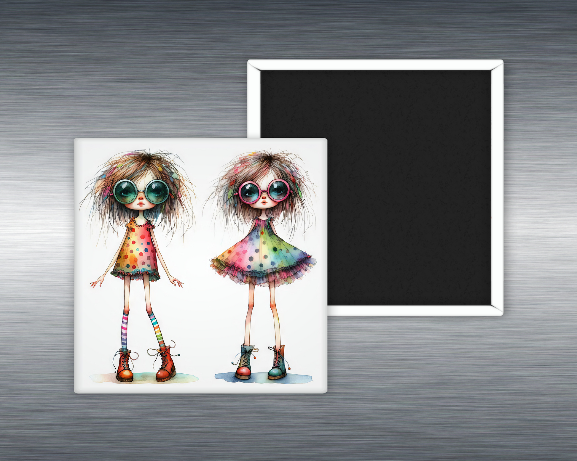 Attitude? Check. Style? Off the charts. The “Eccentric Sunglasses” magnet features a fierce crew of quirky girls rocking oversized sunglasses and one-of-a-kind flair. From wild prints to bold lips and unapologetic poses, these fashion-forward rebels weren’t made to blend in—they were made to turn heads (even if they pretend not to notice).