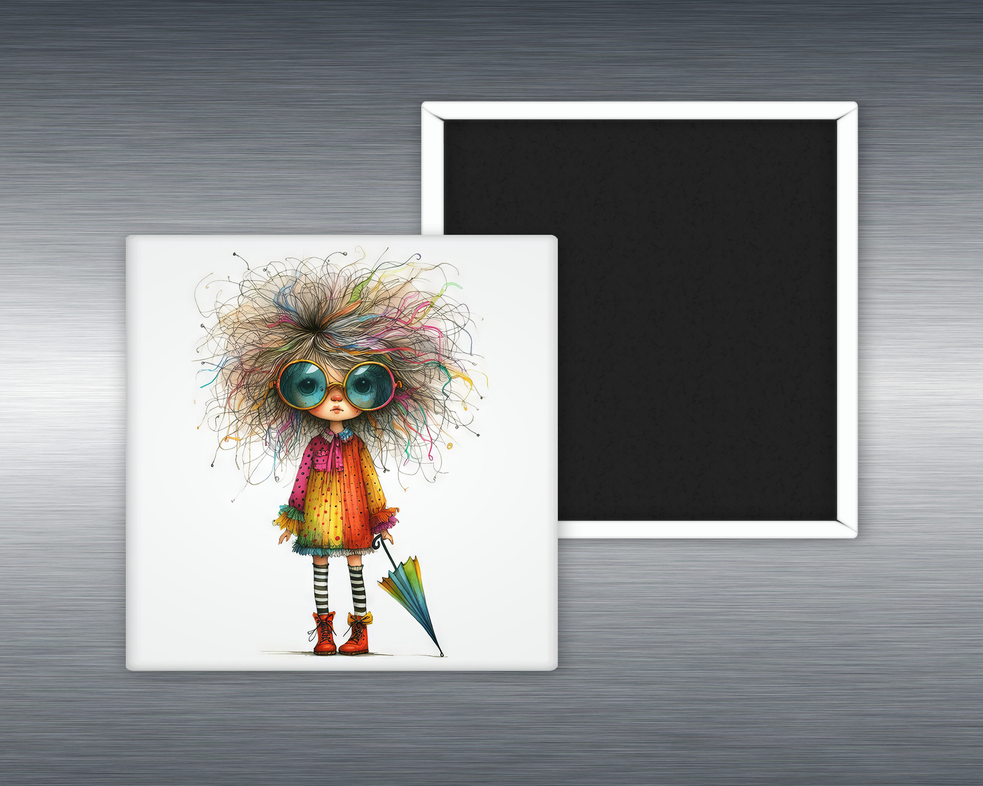 Attitude? Check. Style? Off the charts. The “Eccentric Sunglasses” magnet features a fierce crew of quirky girls rocking oversized sunglasses and one-of-a-kind flair. From wild prints to bold lips and unapologetic poses, these fashion-forward rebels weren’t made to blend in—they were made to turn heads (even if they pretend not to notice).