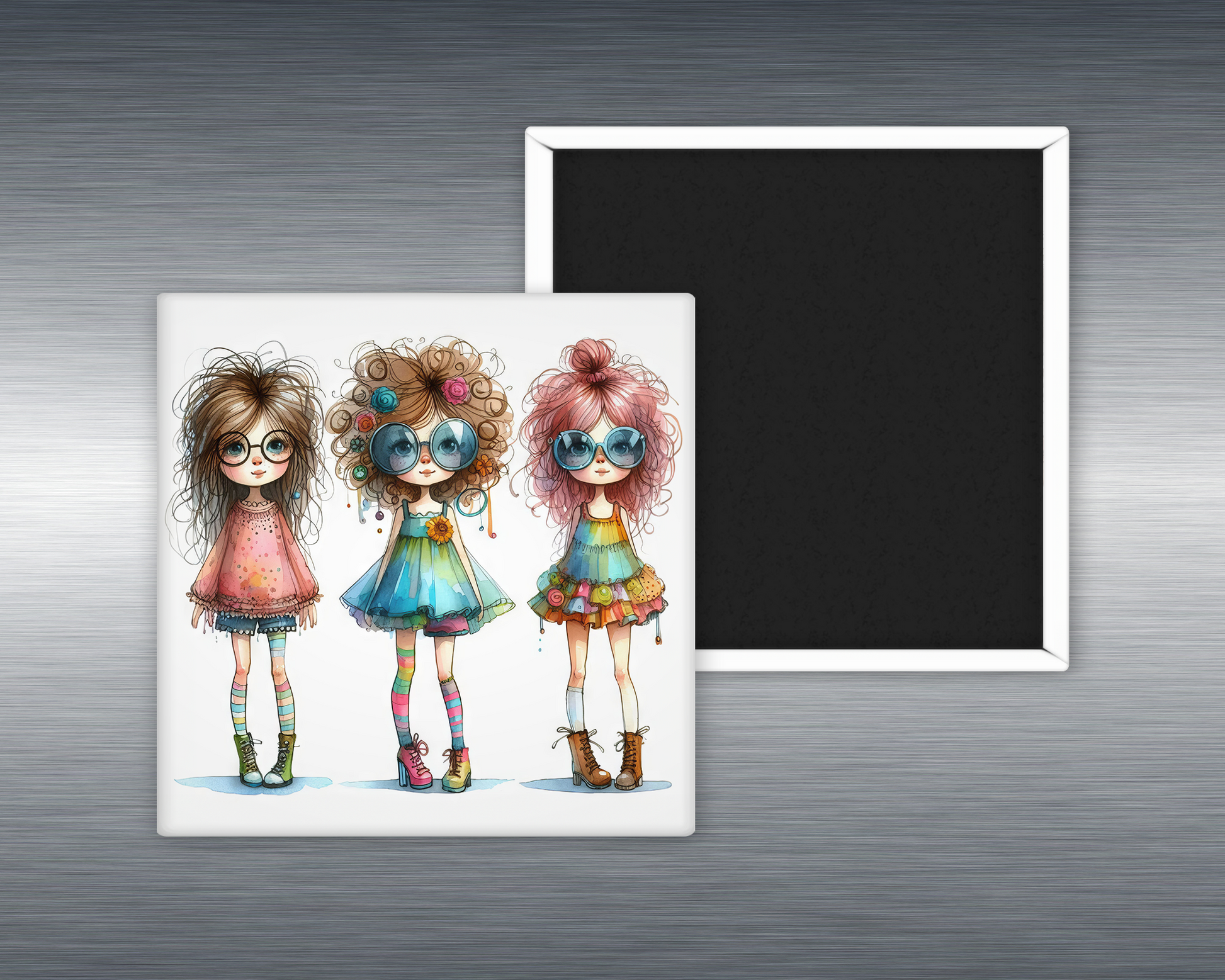 Attitude? Check. Style? Off the charts. The “Eccentric Sunglasses” magnet features a fierce crew of quirky girls rocking oversized sunglasses and one-of-a-kind flair. From wild prints to bold lips and unapologetic poses, these fashion-forward rebels weren’t made to blend in—they were made to turn heads (even if they pretend not to notice).
