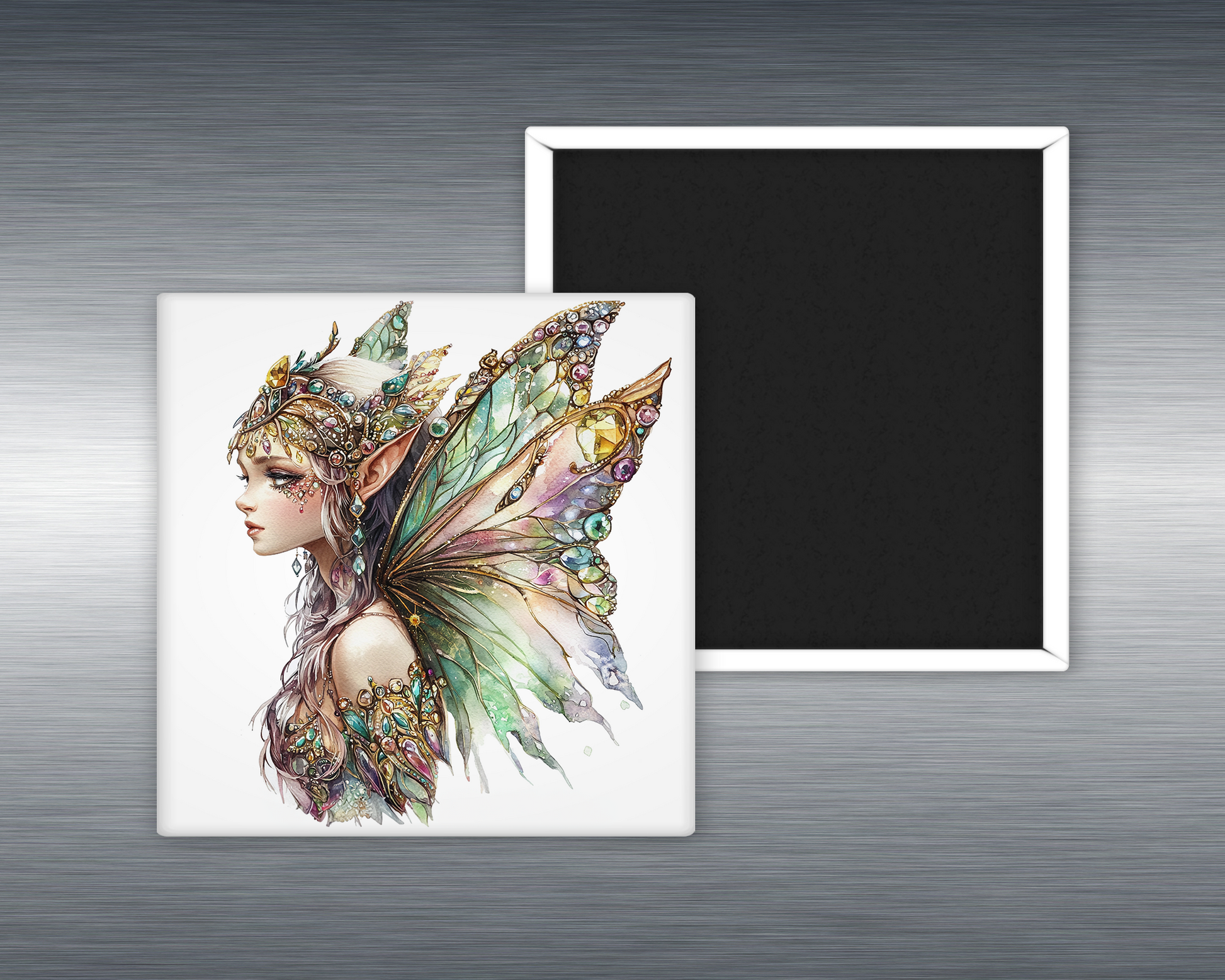 Bathed in moonlight and draped in gemstone finery, the “Gem Fairies” magnet shimmer with ancient elegance and untamed magic. Each ethereal being is adorned with radiant crystals—glimmering from their wings, woven into their hair, and sparkling from their flowing gowns—as if the jewels were gifted by the earth itself.