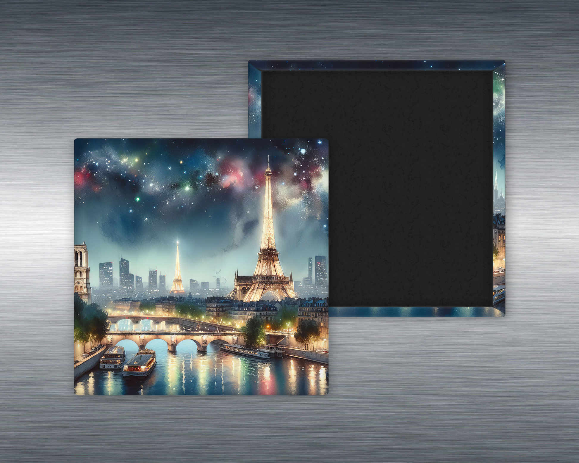 Whether it's the shimmer of the Seine or the silhouettes of lovers strolling by moonlight, this magnet wraps the romance of Paris into one serene, artistic keepsake. A perfect piece for dreamers, travelers, and anyone who finds beauty in the night.