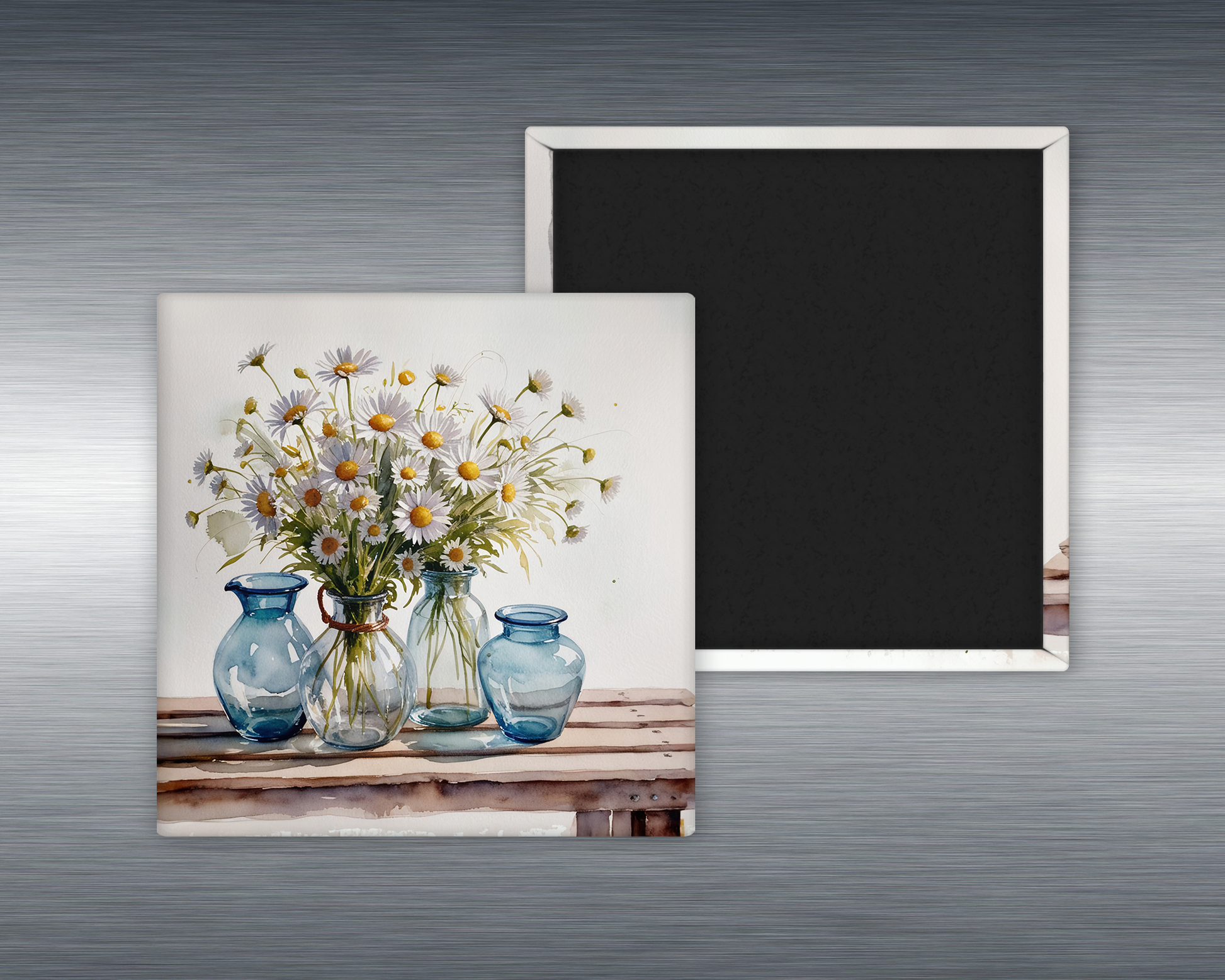 Simple. Serene. Sweetly nostalgic. The “Watercolor Daisies” magnet captures a peaceful moment in time—glass jars filled with cheerful daisies resting on weathered benches. With soft tones and rustic charm, this magnet brings a quiet touch of country beauty to your space.