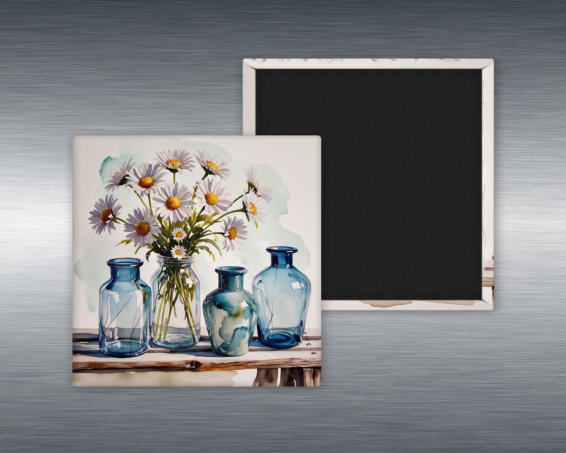Simple. Serene. Sweetly nostalgic. The “Watercolor Daisies” magnet captures a peaceful moment in time—glass jars filled with cheerful daisies resting on weathered benches. With soft tones and rustic charm, this magnet brings a quiet touch of country beauty to your space.